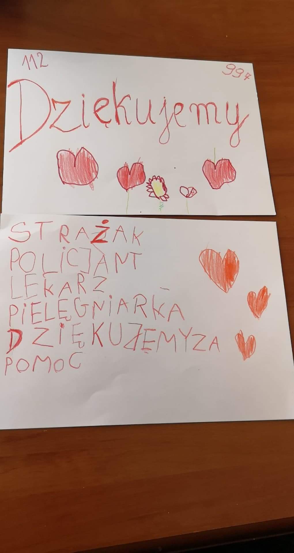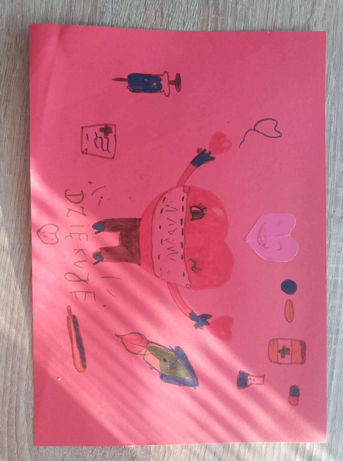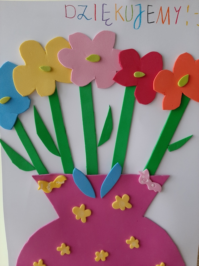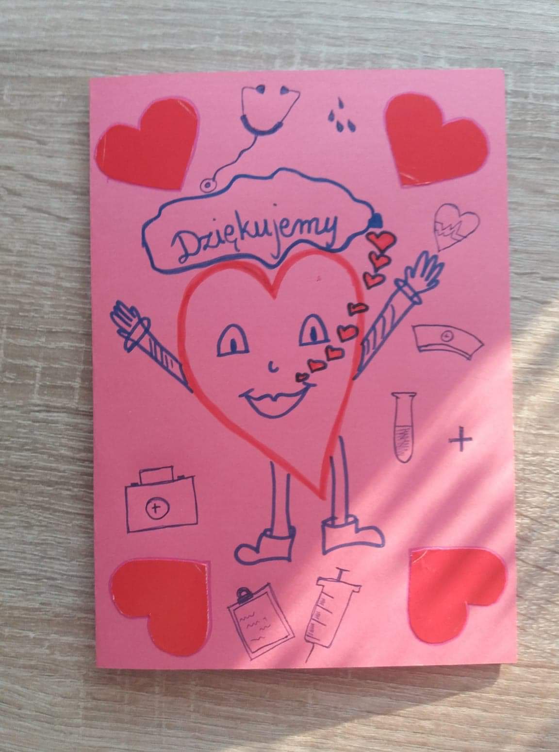 Nasi uczniowie wykonali kartki w podziękowaniu dla wszystkich lekarzy, pielęgniarek, osób pracujących w służbie zdrowia.
